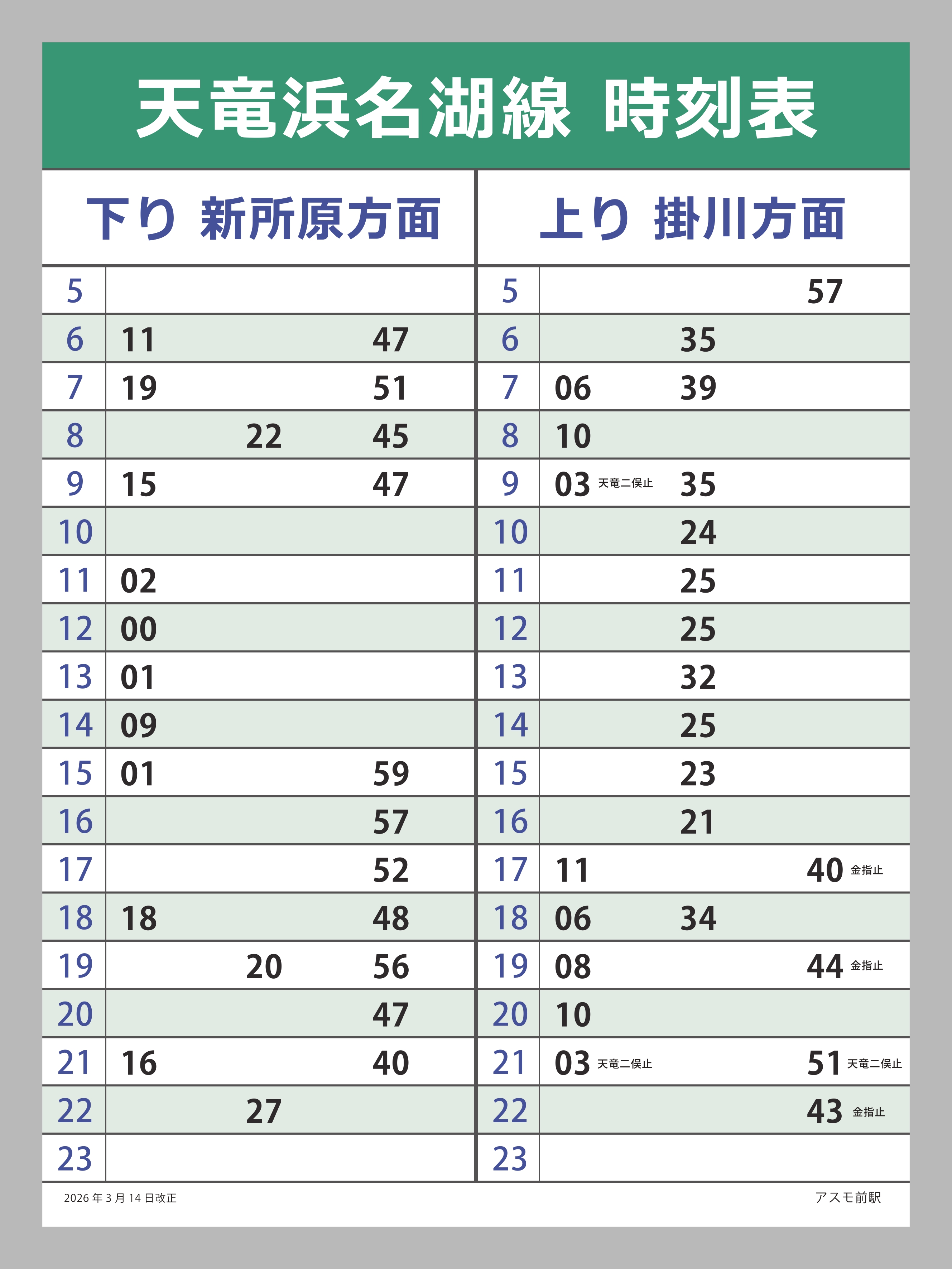 この駅に関するお問い合わせは天竜浜名湖鉄道営業課までお願いいたします。