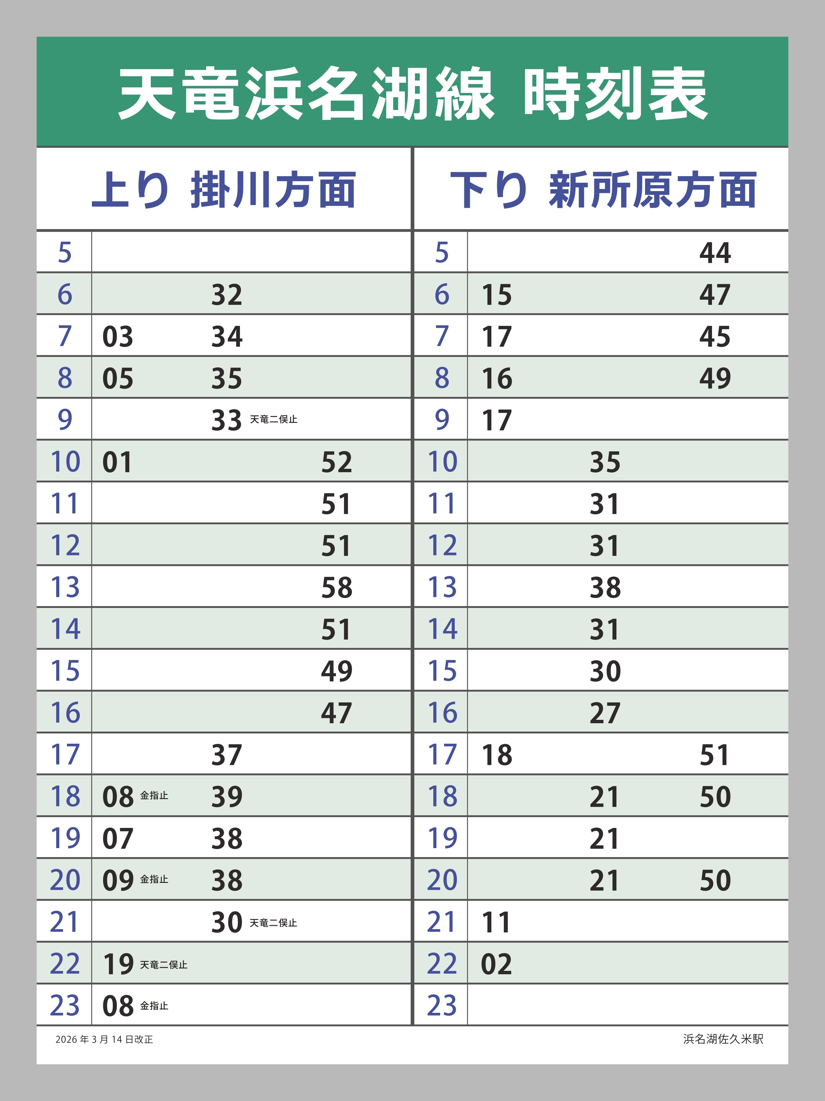 浜名湖の湖畔にある駅です。美しい佐久米海岸へは駅から徒歩10分と近く、春から夏にかけて潮干狩り・ウインドサーフィン・ヨット・海水浴と多くの若者や家族連れで賑わいます。モルタル造りの駅舎内には軽食喫茶店『かとれあ』が、また駅舎前には牛をデフォルメしたユニークな形をしたトイレがあります。「佐久米」という地名は、「佐久」は狭く先が細くなった形、「米」は集落を指すと言われ、その地形どおりの名が付けられたようです。
