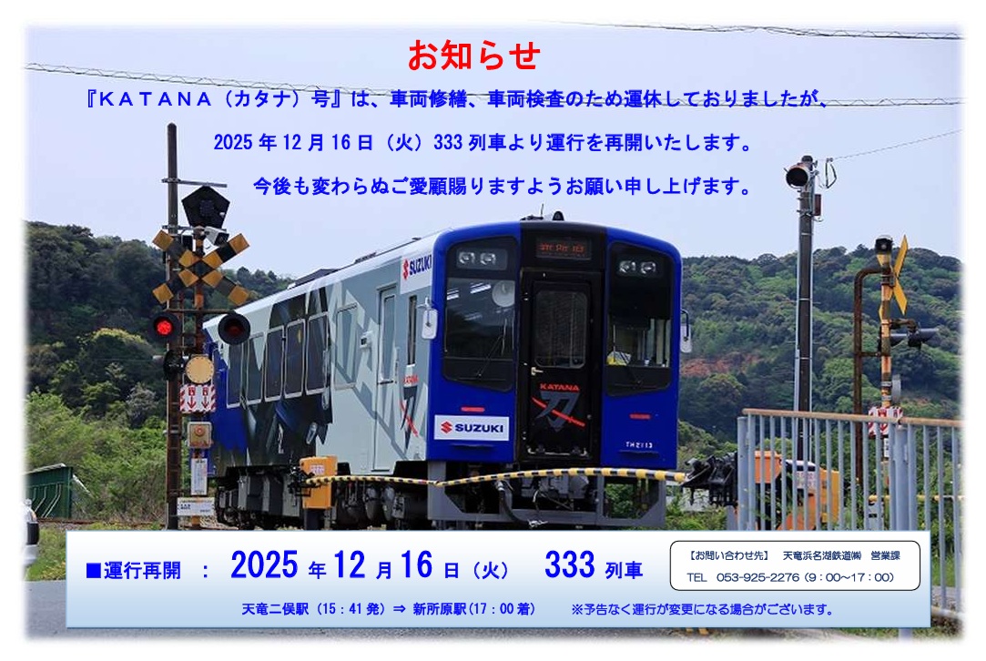 「KATANA(カタナ)号」ですが、2025年12月16日(火)より、営業運転を再開いたします。