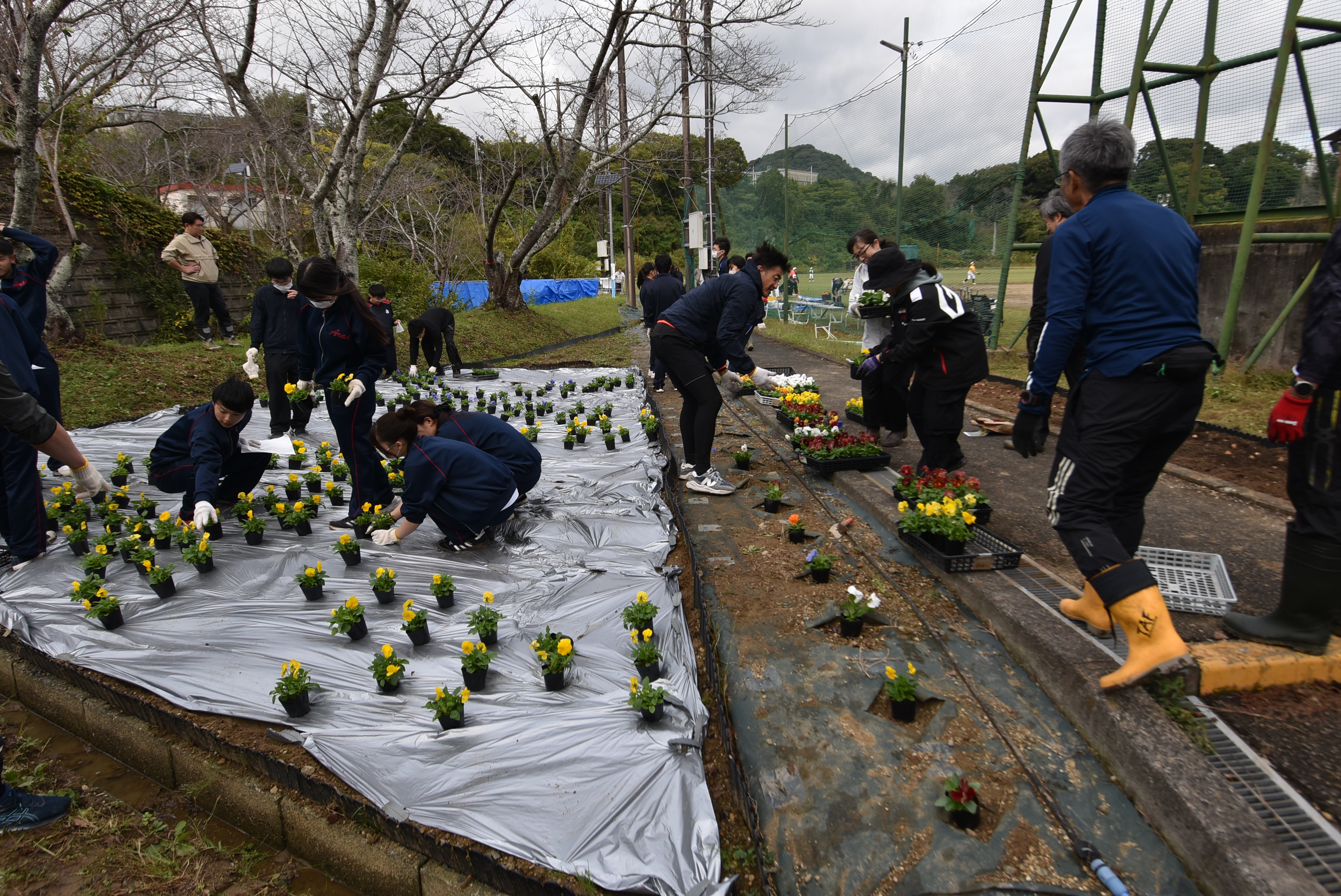コメント:草取りからパンジー苗1,000ポット植え付けありがとうございます。新春に向けてパンジーの開花が楽しみです。