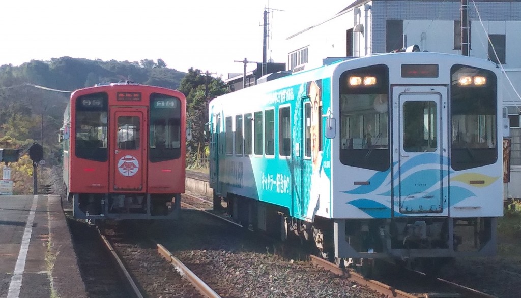 新しく仲間入りした『茶エンナーレ号』が先輩の『キャタライナー号』の到着待ちしていまして朝のご挨拶???