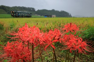 お彼岸のに入り沿線はヒガンバナが咲き乱れています。